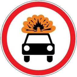 Transporto priemonių, vežančių sprogstamųjų ar lengvai užsiliepsnojančių medžiagų daugiau, negu nustatyta, eismas draudžiamas